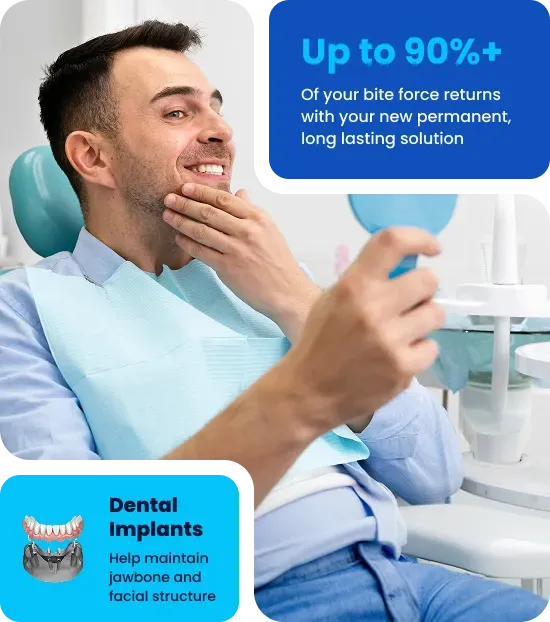 It’s an investment in your smile and your life. Unlike dentures that have to be replaced every few years, dental implants can last a lifetime with the right care. Our All-On-X® dental implants start at thousands less than local competitors.
